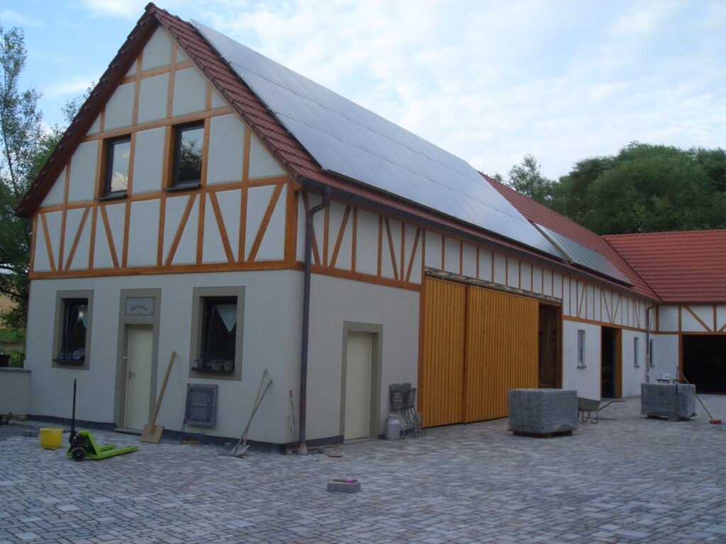 Der KästnerHof ist für die Betreuerfamilie mit ihren eigenen drei Kindern sowie zehn weiteren Kinder ausgelegt. Der zweigeschossige Bau mit ausgebautem Dachgeschoss wurde in das Ensemble der bestehenden Wiesenmühle harmonisch eingefügt. Es war sehr wichtig eine angenehme Wohlfühlatmosphäre für alle Kinder zu schaffen. Im Erdgeschoss befindet sich eine großzügige Diele mit Treppenhaus. Von hier gelangt man in das Esszimmer mit 18 Sitzplätzen und einer gut durchdachten Küche. Von der Küche gibt es einen Austritt in den Kräutergarten, zum Gewächshaus oder den Tieren. Im abgetrennten Schulungsraum können die Kinder in Ruhe ihre Hausaufgaben machen. Auf der oberen Ebene befinden sich Wohn- und Schlafräume mit Bädern, sowie der Therapieraum. Das ausgebaute Dachgeschoss wird von den Kindern bewohnt. Das zentrale Treppenhaus, in der Mitte des Hauses, zeigt zum einen ungewohnte Blickbeziehungen, zum anderen erleichtert es die Kommunikation. Bei der Planung wurde sich auf das Wesentliche konzentriert. Atmosphärische Materialien wie Holz I Stein I Möbel kombiniert mit einem intelligenten Raumkonzept verleihen den Räumen ihre Eigenständigkeit. Das Gebäude ist in einem ansprechenden hellen Farbton gehalten und harmoniert perfekt mit der Mühle.